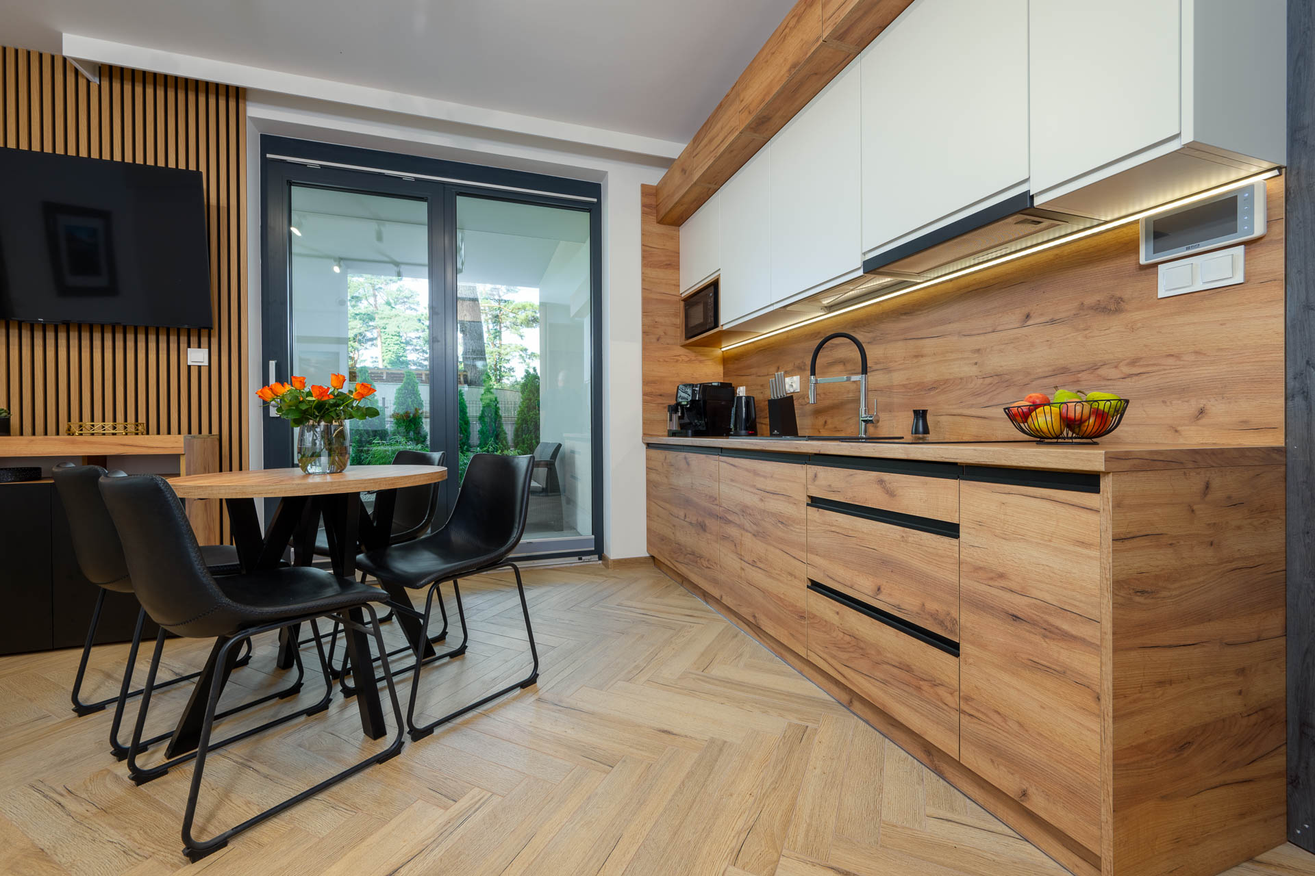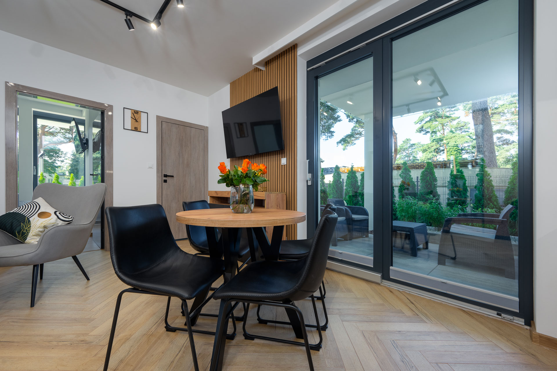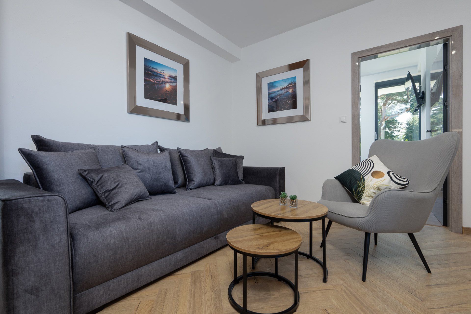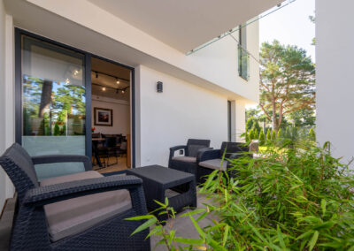 Stylowy, funkcjonalny, zapewniający wygodę i spokój w sercu Jastrzębiej Góry dwupokojowy apartament z jedną sypialnią, przestronnym salonem z aneksem kuchennym oraz dwoma tarasami z meblami ogrodowymi, prywatną łazienką, zlokalizowany na parterze od strony ogrodu. Przeznaczony dla maks. 4 osób.