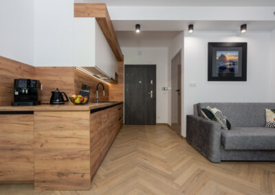 Nasze apartamenty wyposażone są również w suszarkę do włosów, żelazko, deskę do prasowana oraz odkurzacz, suszarka na pranie.